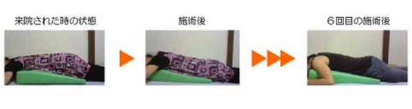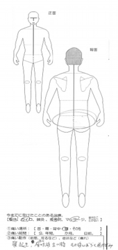 痛い期間7日前 咳をしてぎっくり腰に。会社を休むほど。体を九の字にして、かなり悪い状態でした。4回目では姿勢のいい状態に。 |