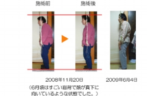 施術を初めて2ヶ月程で全てのコルセット(胸まであった特注のコルセット、大きな腰まであったコルセット、薄いコルセット)は何ひとつ使ってないと喜んでいただいてます。また、「手を使わず腹筋で起きれるようになった」と喜んでいただいております。